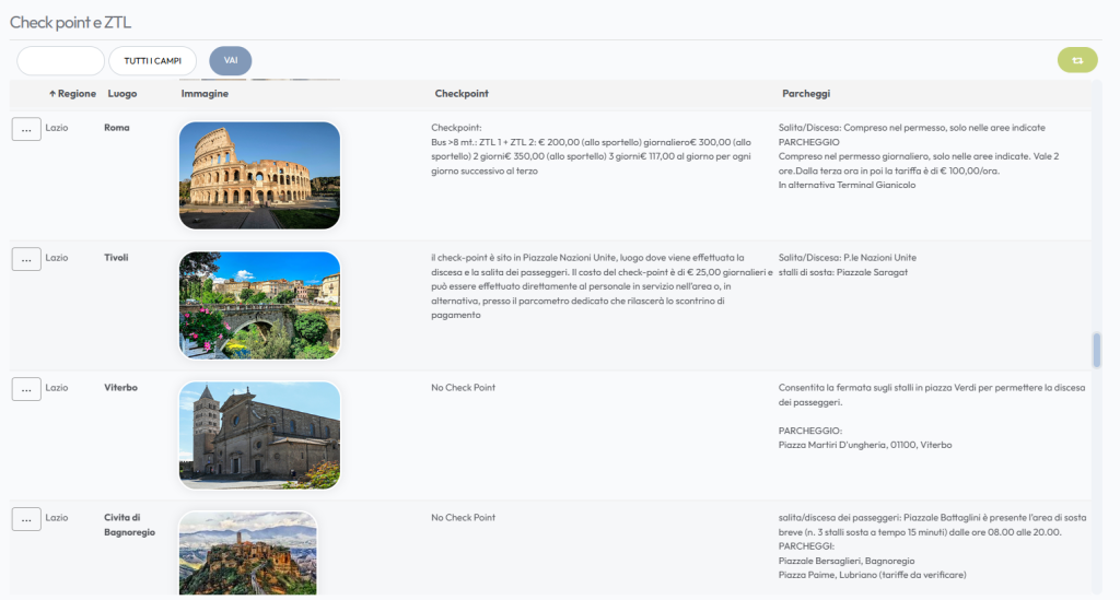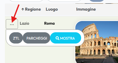 Se si clicca sui tre puntini è possibile trovare il pulsante “mostra” che permetterà di visualizzare per intero la scheda della città, e due pulsanti che rimandano ai link per la ZTL o per i parcheggi se previsti.