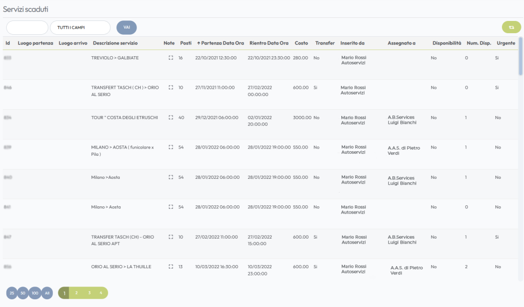 In questa sezione viene visualizzato lo storico di tutti i servizi che l’utente ha inserito sulla piattaforma la cui data risulta passata, indipendentemente che siano stati assegnati o meno.