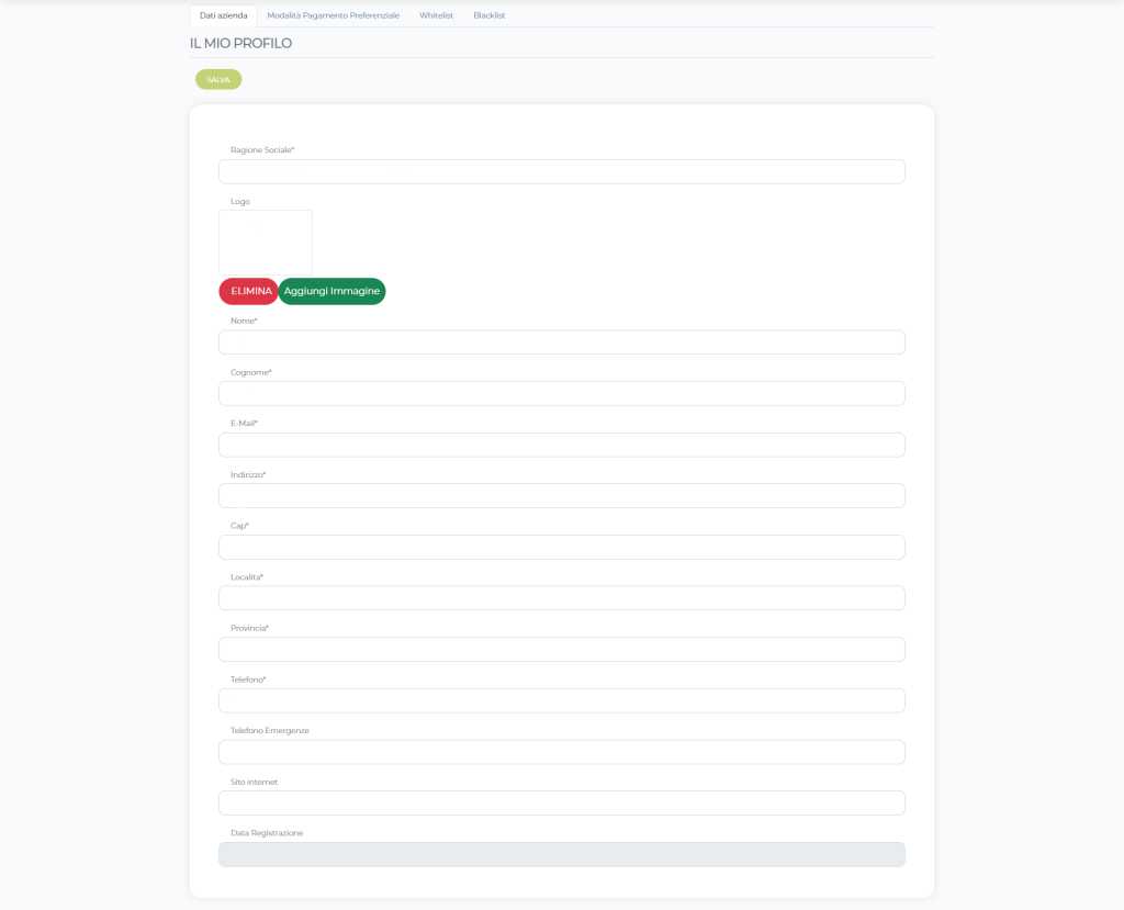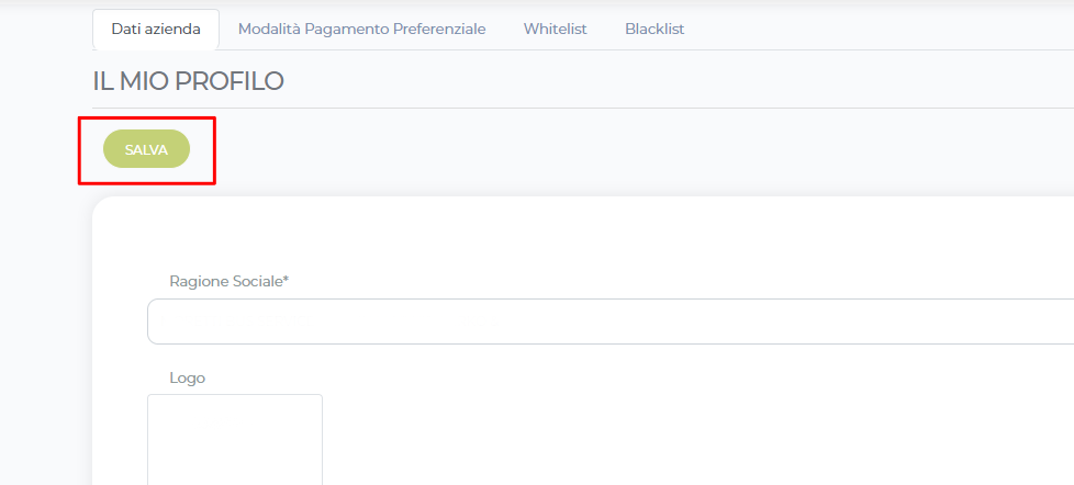 clicca su “aggiungi immagine” per inserire il logo della tua azienda nei seguenti formati .JPG o .PNG.