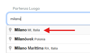 NB: Il luogo deve essere scelto tra le località geolocalizzate che appaiono dalla tendina una volta digitate le lettere del luogo; non lasciare il testo senza la geolocalizzazione.