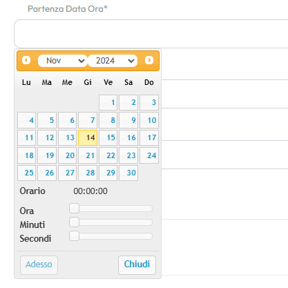 In questi campi inserire il giorno di partenza e quello di arrivo, con i relativi orari previsti.