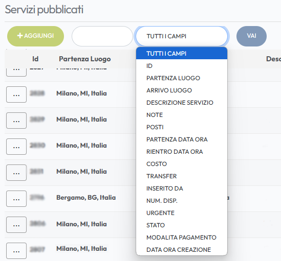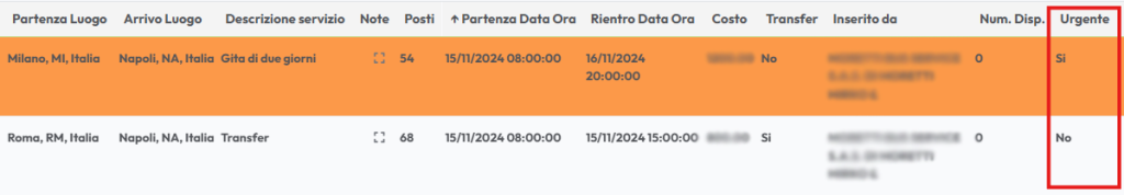 I servizi appaiono in ordine cronologico di evasione e vengono suddivisi in base all’urgenza. Se in fase di creazione viene selezionata la voce “urgenza”, il servizio verrà visualizzato con il colore arancione. Questa funzione viene inserita per servizi da evadere con urgenza in tempi brevi e per i quali il sistema non attende le 36 ore dalla pubblicazione, assegnandolo automaticamente al primo vettore che si candida.